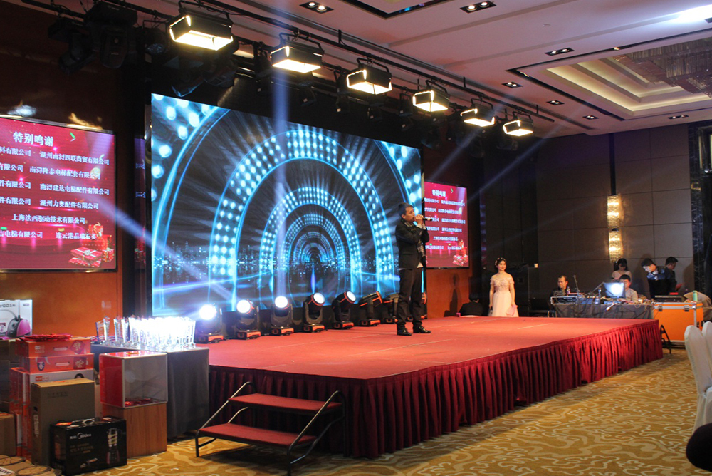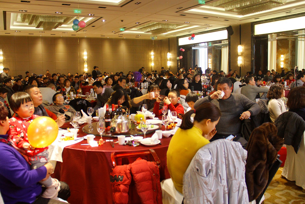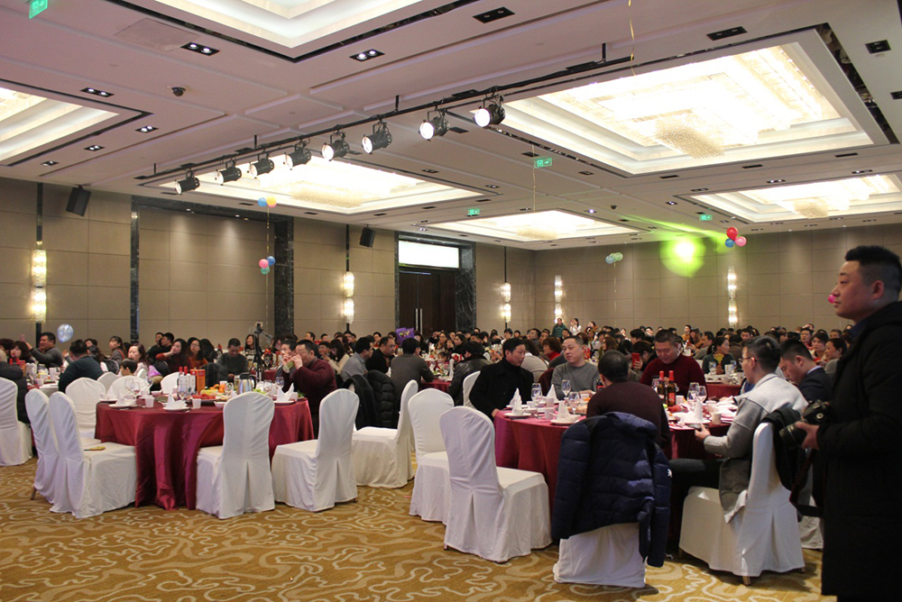 節(jié)目表演之余,隨著董事長上臺祝酒賀詞,大家開始享用晚宴。