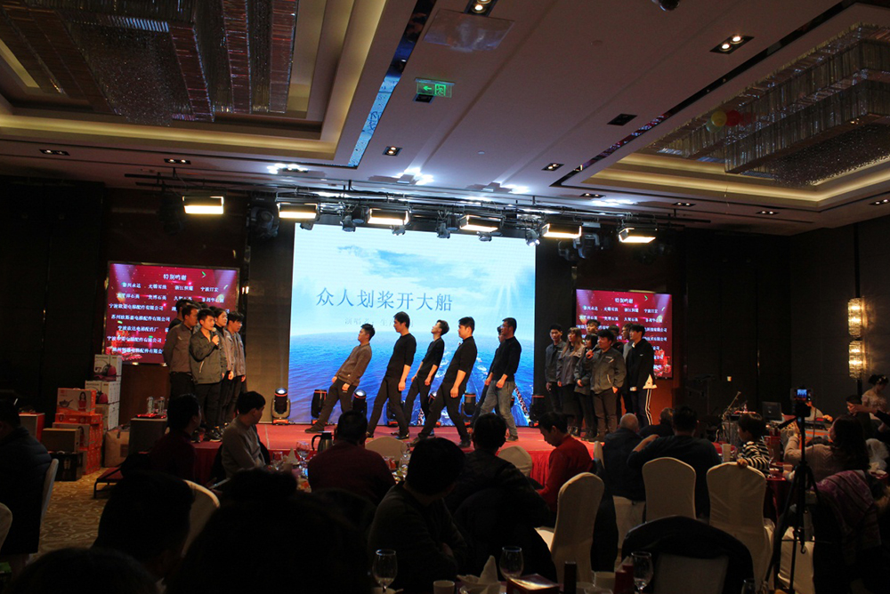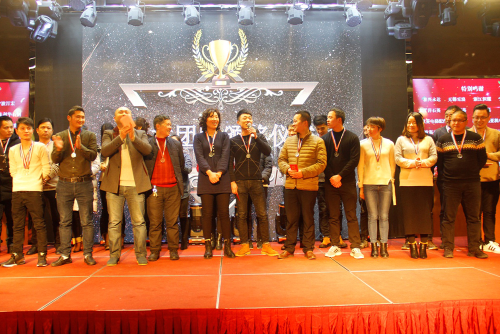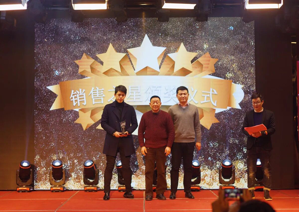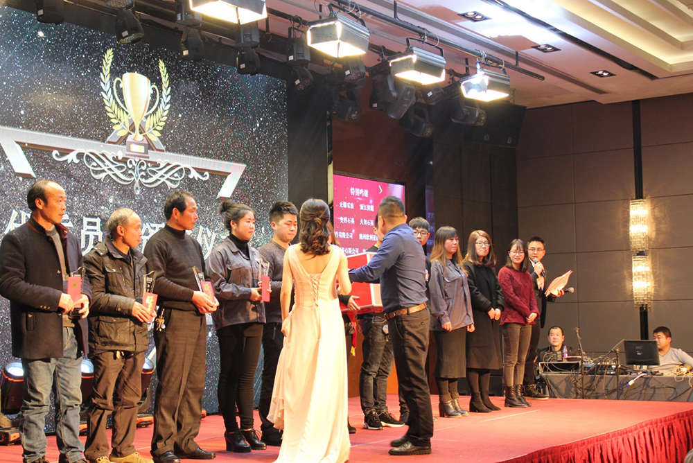2018年是我們揚帆啟航的關鍵之年,我們將任重而道遠,希望全體員工一如既往,繼續(xù)努力,團結高效,加大設備投入技術升級,積極推進新的績效管理模式,加快企業(yè)上市步伐,實行全員持股,打造公眾型企業(yè),進一步增強員工的凝聚力、向心力、戰(zhàn)斗力,團結一致,為完成或超額完成2018年的各項目標任務而一起努力奮斗!董事長做簡短激昂的發(fā)言之后就是優(yōu)秀員工、先進個人、突出貢獻、銷售之星、優(yōu)秀團隊的頒獎環(huán)節(jié)。