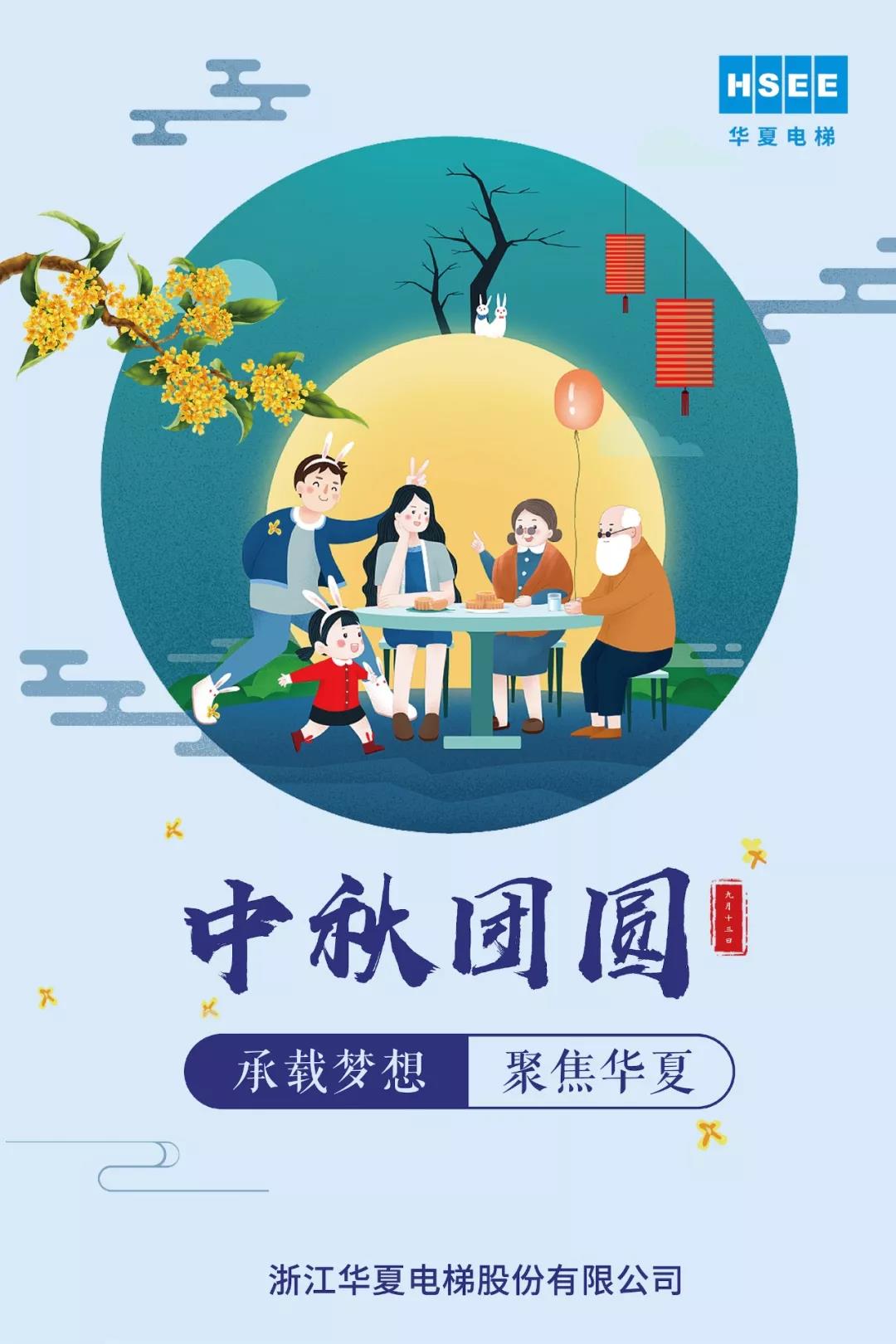 月到中秋分外明,每逢佳節(jié)倍思親。值此中秋佳節(jié)來臨之際,浙江華夏電梯有限公司向各位股東、合作伙伴、親朋好友致以節(jié)日的問候,和誠摯的祝福!